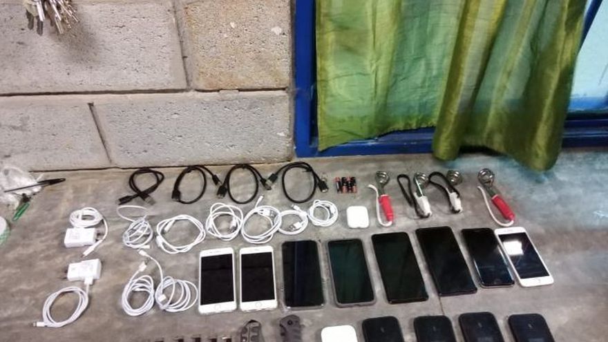 Además, fueron decomisados calentadores, manos libres, cuchillas cables USB, cargadores de celulares, audífonos, cable auxiliar, antenas ruteadoras, llaves de esposas y baterías.