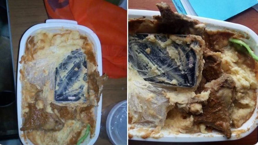 Y es que el celular iba escondido en un envase con alimentos.