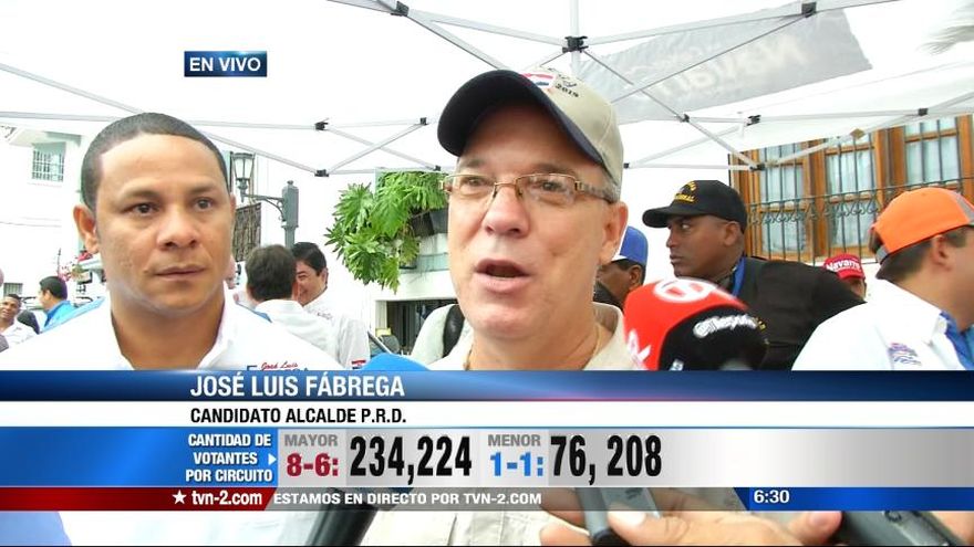José Luis Fábrega encabeza la lista de preferencias en el electorado durante el conteo preliminar de los votos para el puesto de alcalde del distrito de Panamá, a las 5:55 p.m.