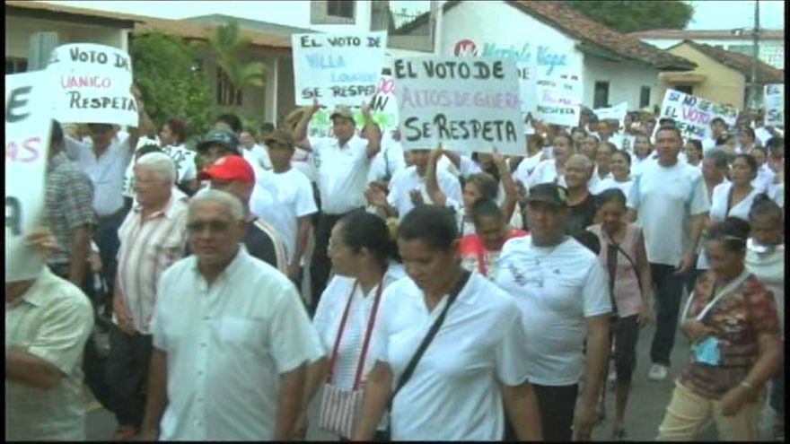Cientos de simpatizantes marcharon por las calles de la Villa de Los Santos exigiendo que se respete el voto de 13,853 personas que el 4 de mayo de 2014 escogieron a Mariela Vega como diputada del circuito. 7-2.