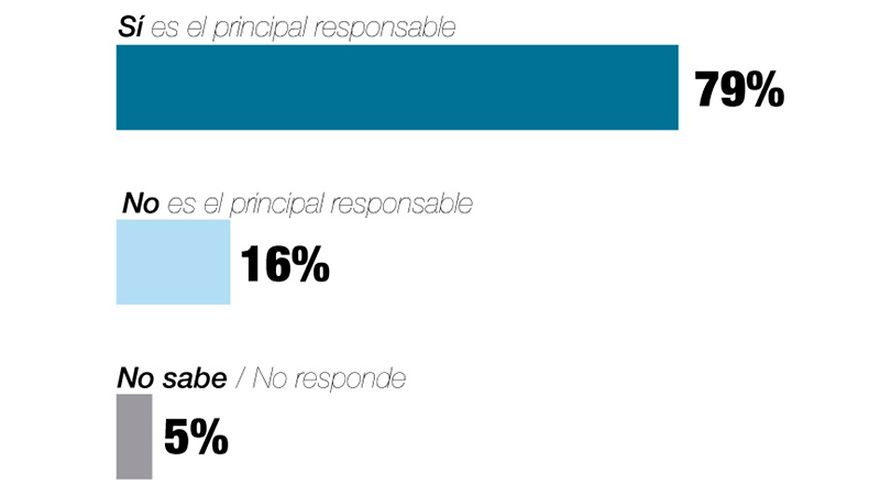 Según la encuesta, el 79% de los panameños considera que Martinelli –quien ha sido mencionado por las víctimascomo la “mente maestra” detrás de los pinchazos telefónicos y de las irregularidades en el uso de fondos públicos durante su gestión– es el “principal responsable por las denuncias recientes de los actos de corrupción y abuso de poder”.
