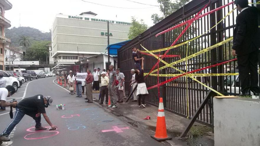 Los manifestantes escribieron con aerosol sobre la vía frente a la entrada del Palacio Legislativo, "robaron más en 5 años que en 50", ironizando sobre la frase del Gobierno de que ha hecho más obras en cinco años que los otros gobiernos en 50 años.