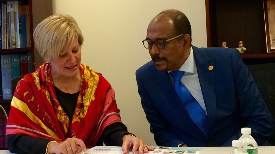La Primera Dama de la República, Lorena Castillo sostuvo este sábado, 26 de septiembre, una reunión con el director ejecutivo de ONUSIDA, Michael Sidibé, en el marco de la reunión número 70 de la Asamblea General de las Naciones Unidas.