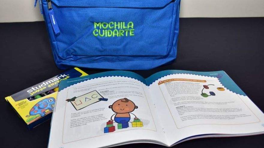 La mochila está equipada con una guía de actividades para familias y cuidadores que promueve el desarrollo a través del juego y comunicación en familia.