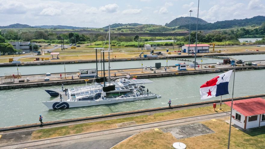 Este lunes 15 de febrero, atravesó por el Canal de Panamá, el primer barco de propulsión eléctrica que funciona gracias a una combinación de energías renovables y un sistema de producción de hidrógeno a partir del agua de mar.