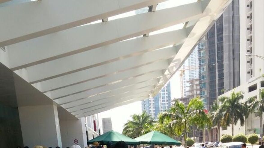 El edificio Business Park Torre V, ubicado en Costa del Este, fue desalojado la mañana de este jueves, 6 de agosto, debido a la protesta de un grupo de afectados por las inundaciones ocurridas en Chepo, en diciembre de 2010, producto de la de inundación de la presa de la hidroeléctrica de Bayano, administrada por la empresa AES Panamá.