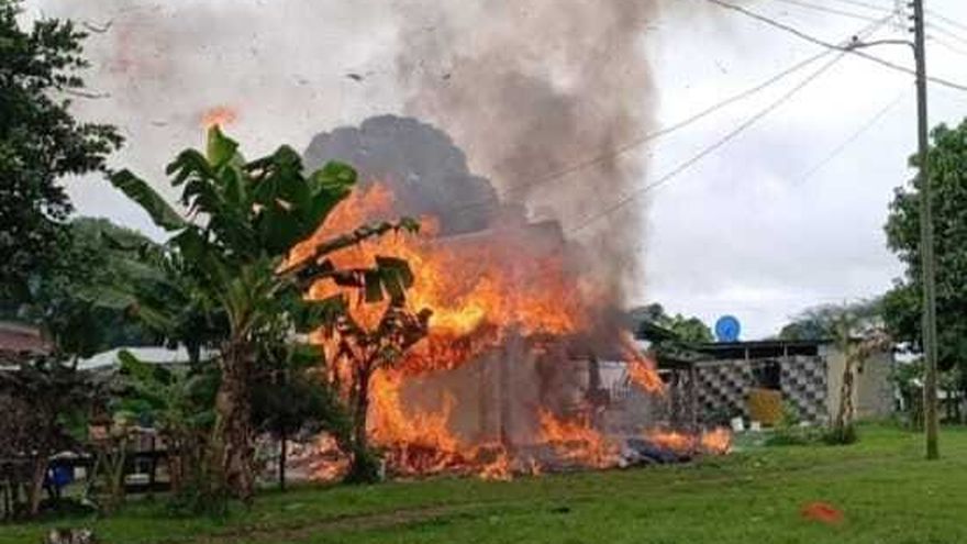 En el video difundido a través de redes sociales se observa a un grupo de residentes de Arimae tratando de aplacar las llamas de una choza, utilizada como vivienda.