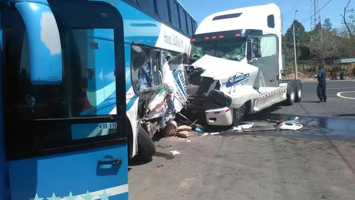 El fuerte impacto entre un camión articulado y un autobús de la ruta Panamá- David, dejó como resultado más de siete personas heridas.