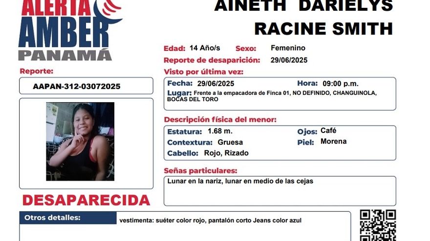 Las adolescentes desaparecidas son: Aineth Darielys Racine Smith, de 14 años, quien fue vista por última vez el 29 de junio a las 9 de la noche, frente a la empacadora Finca 01, en Changuinola.