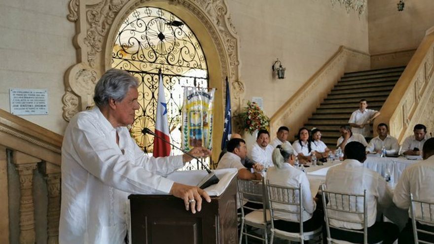 En tanto, en el vestíbulo de este imponente edificio santiagueño se llevó a cabo un consejo municipal, que tuvo por orador al historiador Mario Molina Castillo.