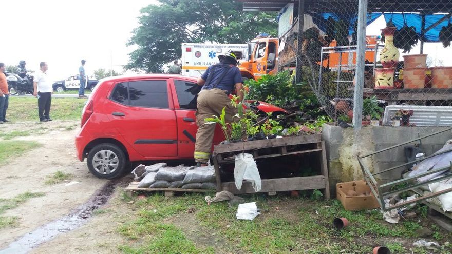 Un auto sedan chocó contra un local de venta de frutas en la vía Interamericana, a la altura de la comunidad de Ciénega Vieja, en el distrito de Antón, provincia de Coclé.