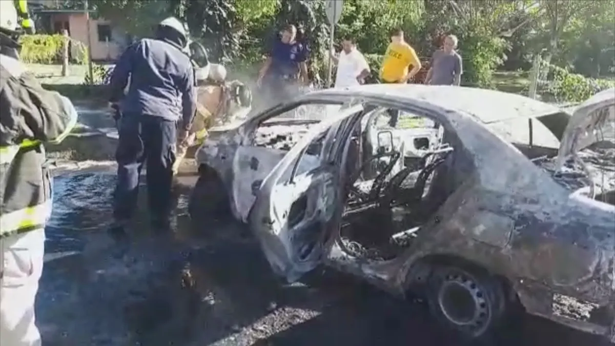 El conductor no llevaba pasajeros. El taxista logró saltar a tiempo, para no sufrir quemaduras.