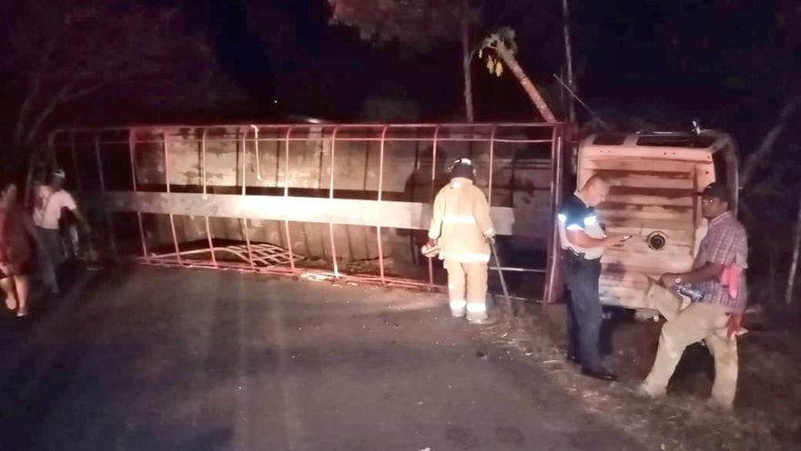 Un camión quedó volcado la madrugada de este lunes 6 de enero, en medio de la vía que conduce a la comunidad de Chupá, distrito de Macaracas, provincia de Los Santos, hecho que dejó al menos una persona herida.