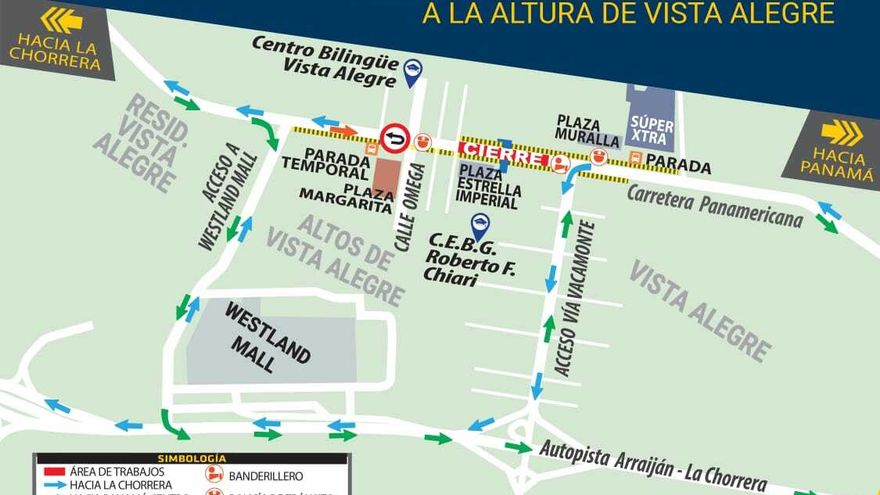 Mientras que quienes viajen hacia La Chorrera podrán ingresar por la vía hacia la autopista, contigua a la Escuela Roberto F. Chiari, tomar la autopista y retornar a la carretera Panamericana por el acceso hacia el Westland Mall, ubicado a un costado del centro comercial.
