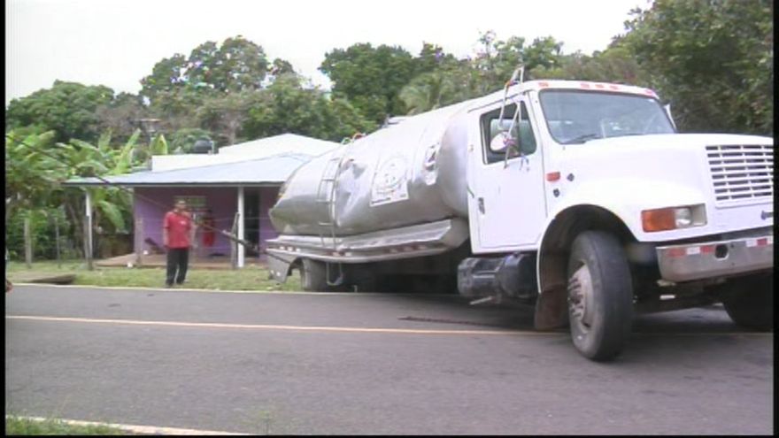 Un carro cisterna que transportaba leche se volcó este domingo, 19 de julio, en la comunidad La Soledad en Santiago, provincia de Veraguas.