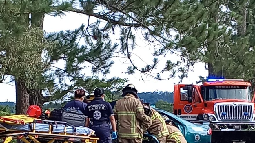 Miembros de los bomberos tuvieron que atender a una persona que quedó atrapada en uno de los vehículos.
