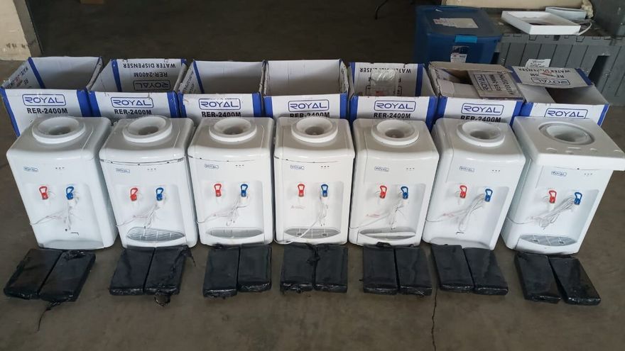 La mercancía ilícita se encontraba oculta dentro de cajas de dispensadores de agua.