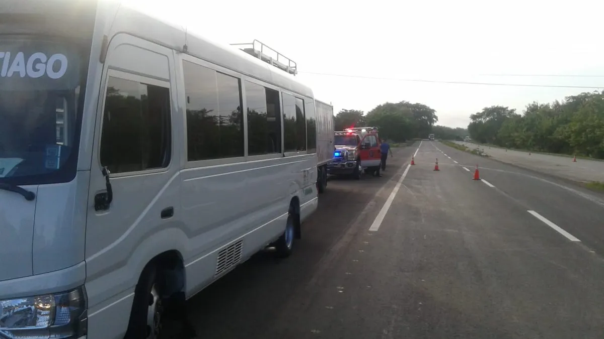 Un camión de reparto colisionó con un autobús de pasajeros de la ruta El Espino-Santiago, en entrada del ingenio Victoria, en la vía Panamericana.