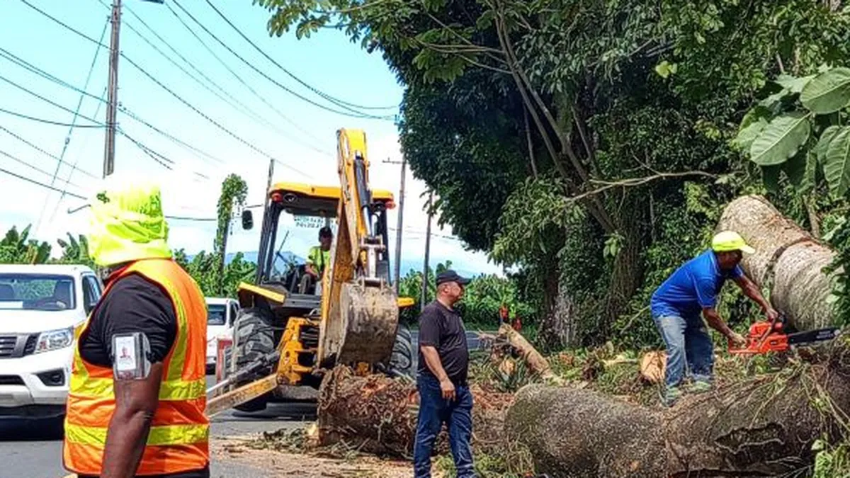 Bocas del Toro, Panamá/El Ministerio de Obras Públicas (MOP), mediante su equipo de mantenimiento regional en Bocas del Toro, llevó a cabo trabajos de remoción de un árbol de gran tamaño que bloqueaba parcialmente la carretera en el sector de Finca 8, con el fin de mantener la seguridad de quienes transitan por la zona.
