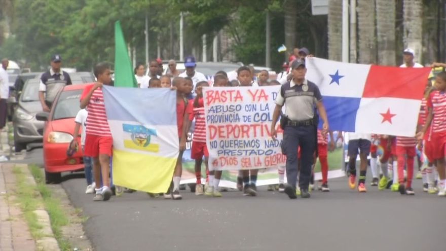 Colón, Colón/Niños y entrenadores de escuelas y academias de fútbol en la provincia de Colón, marcharon por las principales calles para exigir la construcción de estadios.