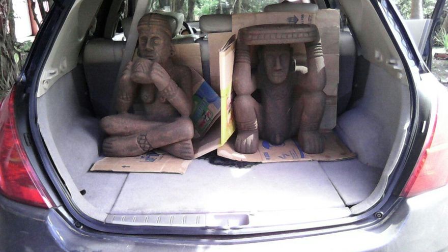 Según la entidad, dos personas fueron sorprendidas el sábado a la mañana “tratando de vender las obras”, las que fotografiaron en el baúl de un auto 4x4: un indígena desnudo, acuclillado, y una con una taza a la boca y las piernas cruzadas.