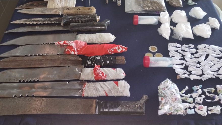 Más 20 sobres de regular tamaño con presunta droga y unas 40 dosis con supuestas sustancias ilícitas, además de 40 celulares, 18 platinas, 7 armas punzocortantes y tres pesas digitales forman parte de los resultados operacionales realizados en la cárcel pública de Santiago en la provincia de Veraguas.