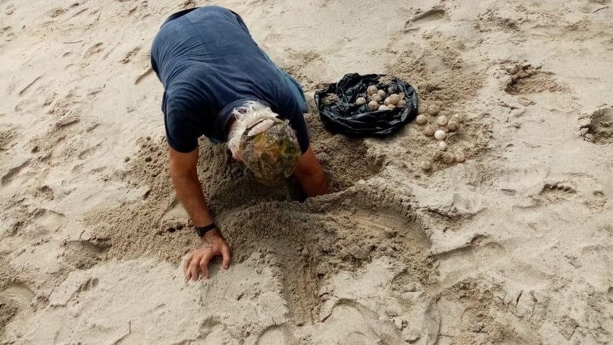 Previamente, agentes de la Policía Nacional que realizaban una ronda por el sitio se percataron del desove que mantenía la tortuga, por lo que hiceron el contacto para que los huevos fueran trasladados hacia un vivero.