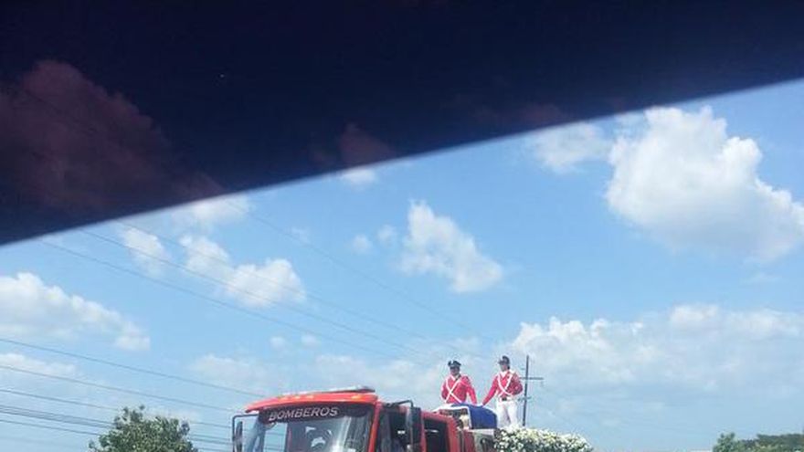 Los restos del expresidente de la República, Juan Demóstenes Arosemena (q.e.p.d.), son trasladados este jueves, 25 de junio, a la ciudad de Santiago provincia de Veraguas en un carro del Cuerpo de Bomberos.