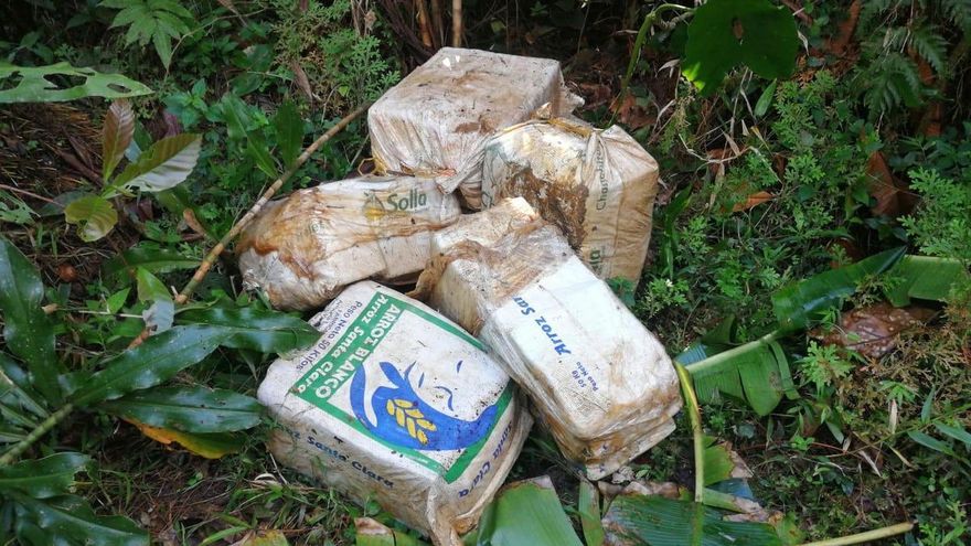 Eran al menos cinco pacas en las que estaba empacada la droga, en medio de un terreno solitario.