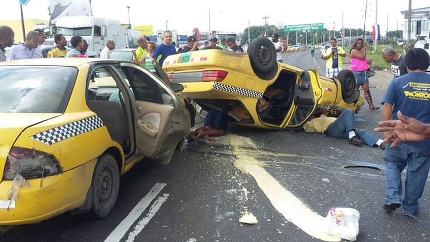 Tres vehículos, entre ellos dos taxis, estuvieron involucrados en el accidente, dejando como resultado, tres heridos de consideración.