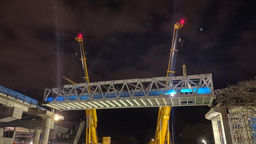 En horas de la madrugada de este domingo 14 de marzo, concluyeron los trabajos de montaje de la pasarela o puente peatonal de la estación ITSE, del proyecto Ramal de la Línea 2 del Metro de Panamá.