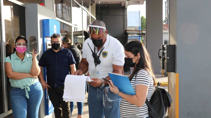 Inspectores y supervisores migratorios atienden a los usuarios según el horario establecido para el proceso.