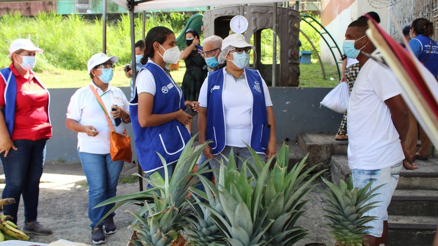Vendedores ambulantes fueron hisopados como parte de detección de la COVID-19, durante un operativo realizado por funcionarios de la Región de Salud de San Miguelito, en coordinación con la Junta Comunal del corregimiento José Domingo Espinar.