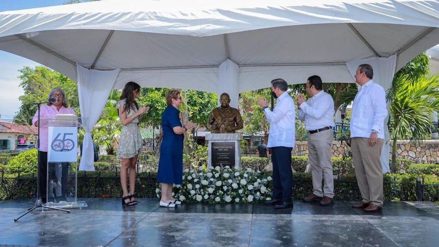 En una emotiva ceremonia en honor a la trayectoria del radiodifusor, Cortizo develó el busto junto a la nieta de Solís, Megan Solís Poll, y a la expresidenta de la República Mireya Moscoso.