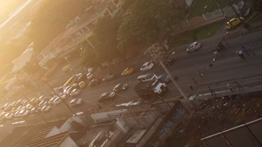 En una fotografía compartida por usuarios en redes sociales, se observa cómo un grupo reducido de manifestantes mantiene cerrados los cuatro carriles de la vía.