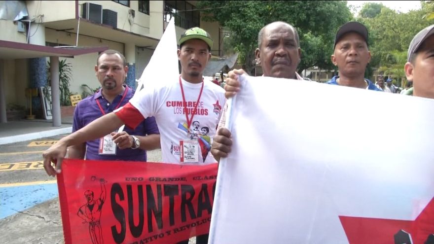 Entre empujones y gritos los castristas pedían entrar a las mesas de negociación, pero no se les permitía, ya que los organizadores argumentan que estos no poseen las debidas acreditaciones al foro.