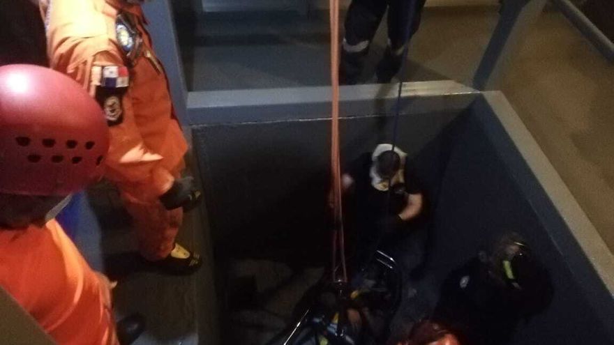 Un trabajador que cayó al pozo de un ascensor, fue rescatado la noche de este martes por miembros del Cuerpo de Bomberos de Panamá y el Sistema Nacional de Protección Civil (Sinaproc).