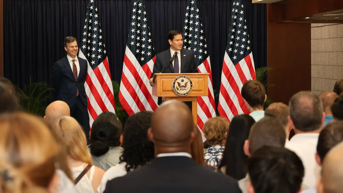 Ciudad de Panamá/Luego de su reunión con el presidente de la República, José Raúl Mulino, el secretario de Estado, Marco Rubio, continuó su agenda en Panamá con una visita a la embajada de Estados Unidos, donde tuvo la oportunidad de interactuar con el personal diplomático y los familiares presentes.