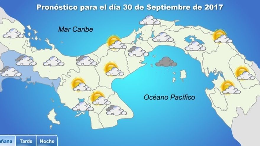 Lluvias dispersas por la mañana, tormenta con lluvias por la tarde y cielo nublado por la noche, es el pronóstico del clima para la ciudad de Panamá para este sábado 30 de septiembre.