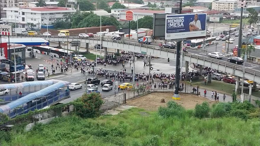 La protesta fue monitoreada por la Policía Nacional para evitar que los estudiantes cerraran los cuatro paños de la vía en Río Abajo.