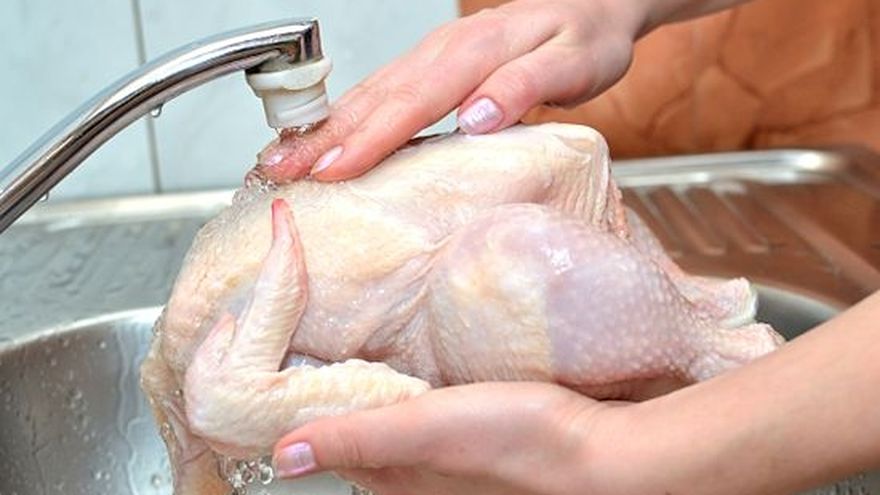 La Agencia de Normas Alimentarias del Reino Unido advirtió que lavar el pollo antes de cocinarlo aumenta el riesgo de propagación de la bacteria campylobacter en las manos, las superficies de trabajo, la ropa e utensilios de cocina a través de la salpicadura de gotas de agua.