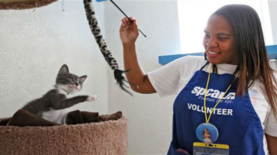 "No sé cómo podríamos funcionar sin voluntarios. Nunca podríamos hacer lo que hacemos por los animales sin la ayuda de ellos", dice Robin Starr, presidente de la Sociedad para la Prevención de la Crueldad Animal, con sede en Richmond, Virginia.