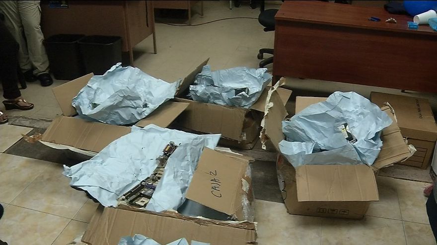 Personal de la Autoridad Nacional de Aduanas, encontró cinco cajas con una máquina pinchadora (escuchas telefónicas), que a simple vista según las autoridades, parecían partes de un equipo informático, ya que se encontraban desarmadas.