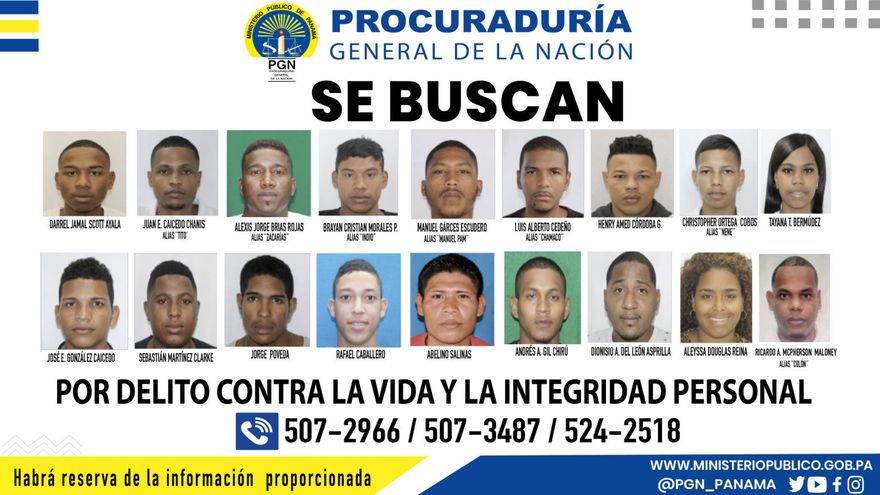 Entre los más buscados se encuentran Ricardo A. “Colón” Mcpherson Maloney, Brayan Cristian “Indio” Morales P., Joshua Andrés “Flappy” Ruiz B., Juan E. “Tito” Caicedo Chanis, Alexis Jorge “Zacarías” Brias Rojas, Christopher “Nene” Ortega Cobos, Luis Alberto “Chamaco” Cedeño y Gustavo “Gustavito” Miller.