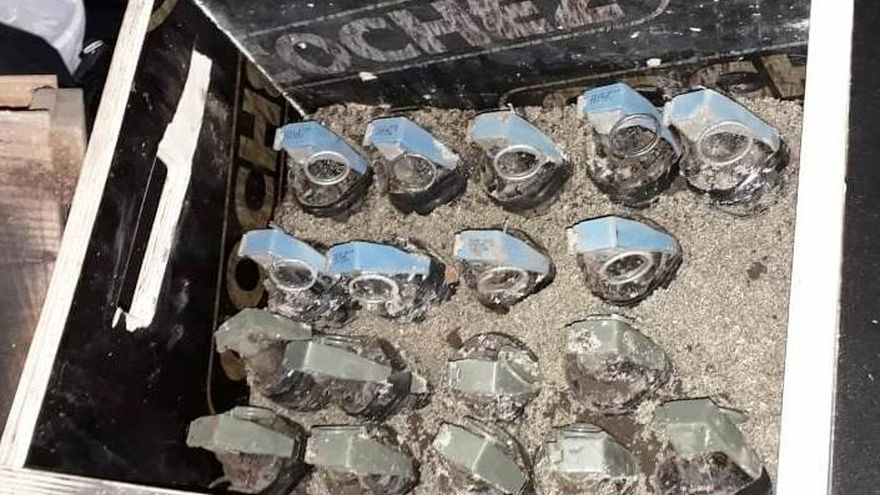 Es en ese momento, donde las unidades policiales y las autoridades judiciales detectan dentro del vehículo tipo sedán, 18 granadas de fragmentación y municiones 2.23.