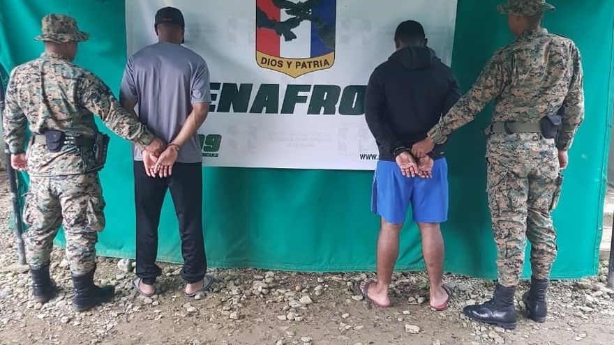 Agentes del Servicio Nacional de Fronteras (Senafront) aprehendieron a dos colombianos en Puerto Escocés, comarca de Guna Yala, por presunto tráfico ilícito de migrantes.