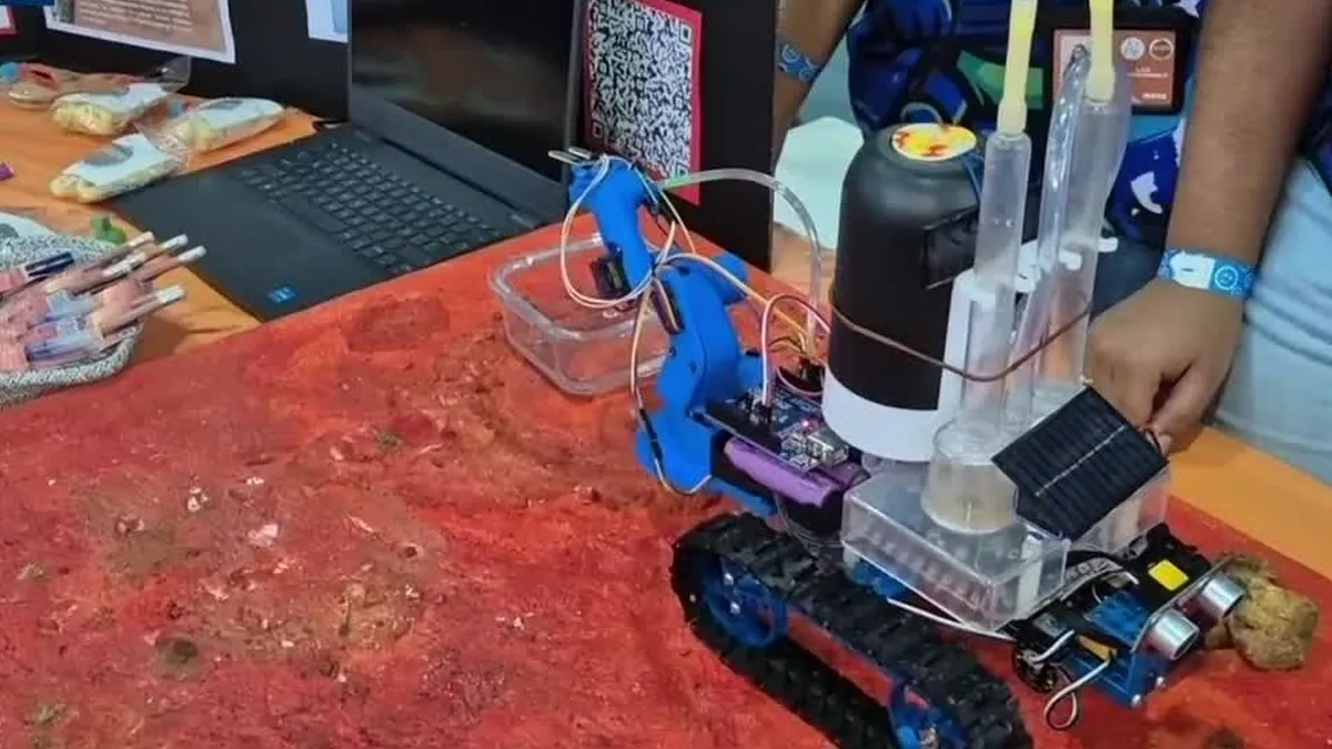 “El agua en Marte está congelada en el subsuelo, entonces cuando el sensor de humedad detecte esa presencia, el brazo robótico va a bajar y, mediante fricción, extraerá el agua”, explicó Lía Gutiérrez, una de las estudiantes que forma parte del equipo creador del proyecto.
