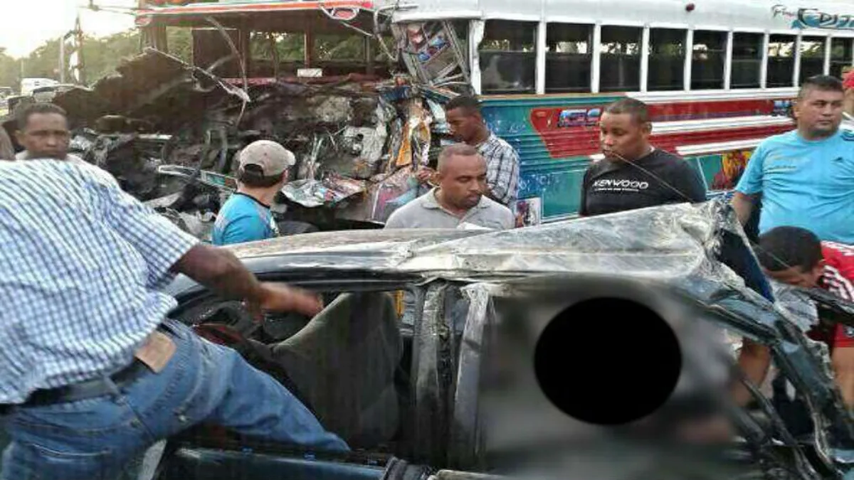 En este accidente, murieron el conductor del bus de la ruta Chepo-Corredor, al caerle encima uno de los vehículos. El otro fallecido era el conductor del auto que cayó sobre el bus.