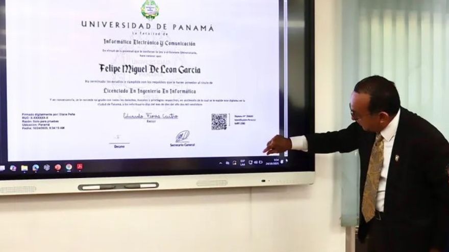 Durante la demostración, Flores mostró el proceso: ingreso a la plataforma interna "Diplomas para la firma", generación del documento y aplicación de la firma electrónica. "Esa firma tiene validez internacional, no solamente en Panamá, sino para cualquier otro trámite", aseguró.