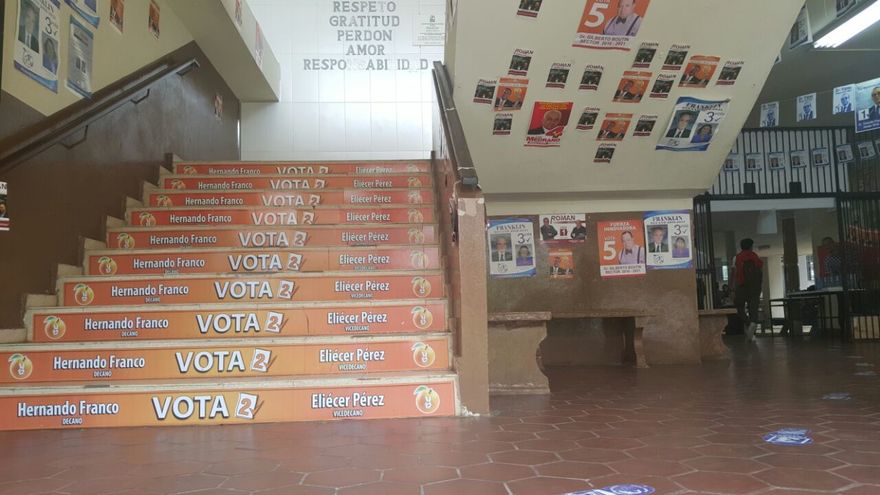 Las elecciones en la UP serán el 29 de junio próximo y en los pasillos se puede ver una gran cantidad de propaganda de cada uno de los candidatos.